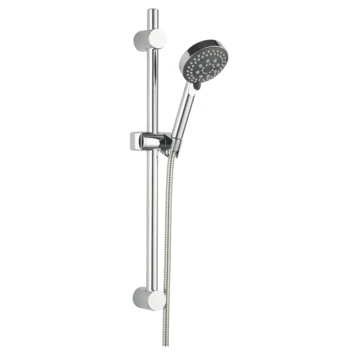 De doucheset bestaat uit een ronde handdouche met een diameter van 10 cm met 5 straalstanden, een 150 cm doucheslang van rvs en een glijstang met houder en verstelbare muursteun. Dankzij de verstelbare muursteun monteer je de nieuwe glijstang over de boorgaten van je oude set. De houder van de handdouche kun je in hoogte verstellen en is zwenkbaar. De handdouche heeft 5 straalstanden, waardoor je zelf de ideale straalsterkte kan instellen. De Jose handdouche is ook los verkrijgbaar. Bij de duurzame Atlantic douchesets wordt een waterbesparende ring geleverd die je naar keuze kunt plaatsen tussen de douchekop en -slang. Met de ring bespaar je tot 40% water. Kalk hecht zich moeilijk vast aan de siliconen sproeikopjes en kan gemakkelijk met de vingers afgeveegd worden. De doucheslangen zijn voorzien van universele 1/2″ aansluiting en passen op iedere douchekraan. Je draait deze slangen eenvoudig met de hand op de uitloop van de kraan. Op de douchesets, -koppen en -slangen van Atlantic heb je 3 jaar garantie.
