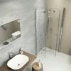 De OK badwand 140×75 cm voorkomt gespetter in je badkamer tijdens het douchen en zorgt ervoor dat jouw badkamervloer droog blijft. Zo glijd je minder snel uit in de badkamer. Bovendien geeft het een meer open blik in je badkamer ten opzicht van een douchegordijn. Het 4 mm dikke veiligheidsglas is sterker dan gewoon glas, doorzichtig en afgewerkt met een wit profiel. Het scherm heeft een afmeting van 75 cm breed en 140 cm hoog. Het douchescherm is geschikt voor montage aan de linkerzijde.
