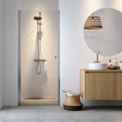Je kunt kiezen of je de deur links- of rechtsdraaiend plaatst. Bovendien draait de zelfsluitende douchedeur zowel naar binnen als naar buiten, zodat je de vrije ruimte in je badkamer optimaal benut. De douchedeur is 90 cm breed, 200 cm hoog en schroef je met de meegeleverde bevestigingsmaterialen aan de muur.