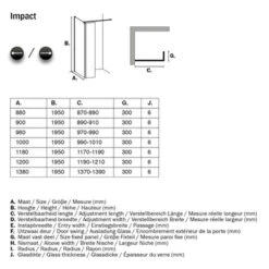 De Sealskin Inloopdouche Impact A1 88x30x195 cm Chroom heeft 8mm dik veiligheidsglas en oogt stijlvol. De ruimtelijke opzet wordt versterkt door de inkortbare steun die op 90 graden geplaatst wordt voor maximale stabiliteit. De douchewand is in een douchebak te plaatsen, maar kan ook direct op de vloer gemonteerd worden. Het veiligheidsglas zorgt voor een stevige wand en dankzij de antikalk laag is de douchewand eenvoudig schoon te maken. Deze inloopdouche kun je ook in de breedtematen 98, 118 en 138 cm in de GAMMA webshop kopen.